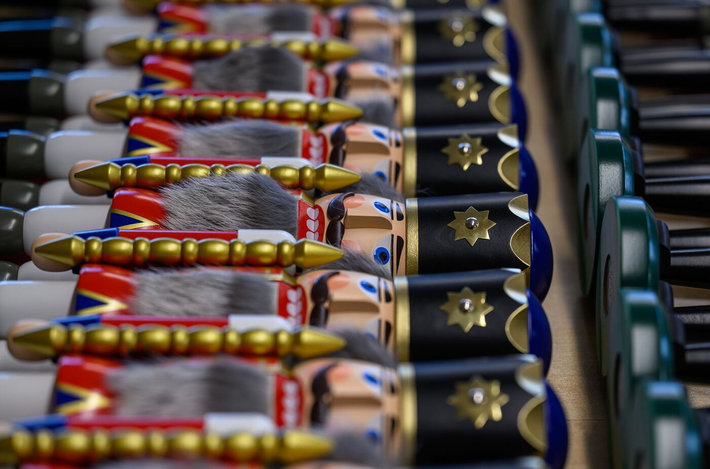 - Nachschub fürs Fest: Fertig produzierte Nussknacker liegen in der Schauwerkstatt der Seiffener Volkskunst eG.