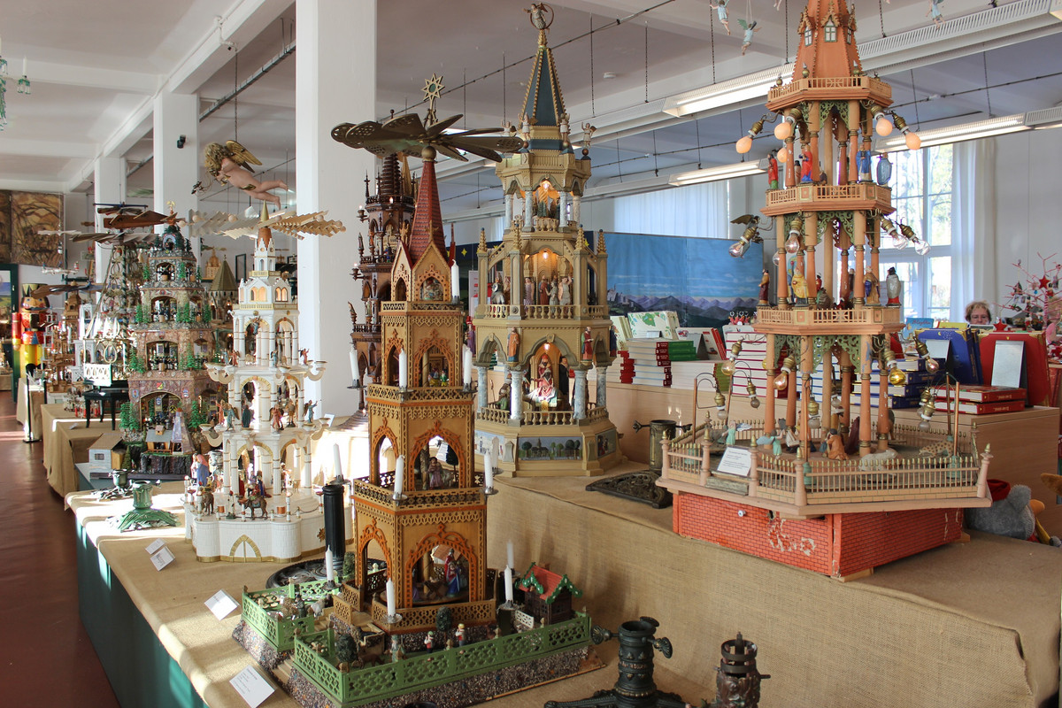 Außerdem gibt es weihnachtliche Exponate zu sehen. Darunter sind Weihnachtsberge, hunderte Pyramiden und Leuchter. Geöffnet hat die Schau bis Ende Januar immer Freitag, Samstag und Sonntag 10 bis 18 Uhr.