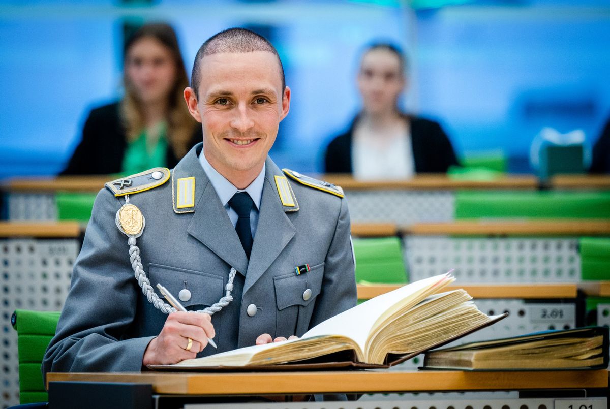 - Eric Frenzel bei seiner Eintragung in das Goldene Buch des Sports.