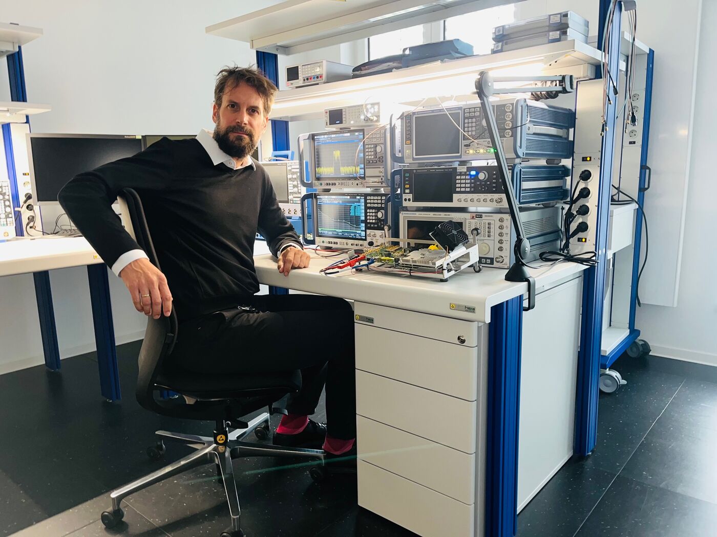 - Software-Entwickler Richard Hähne prüft bei Rohde & Schwarz ein Kommunikationssystem für die Marine