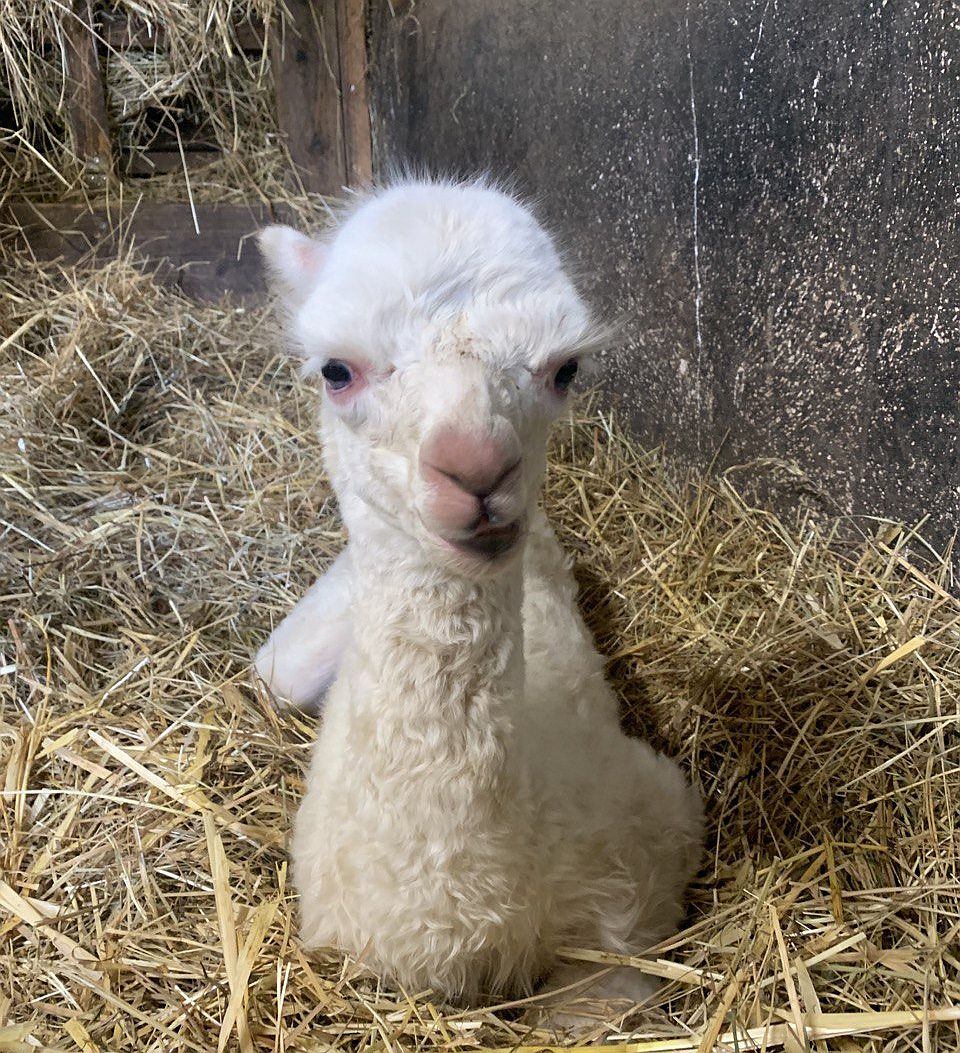 Kleine Sensation im Auer Zoo der Minis: Erstmals in über 20 Jahren Zucht ist ein komplett weißer kleiner Alpaka-Hengst geboren.