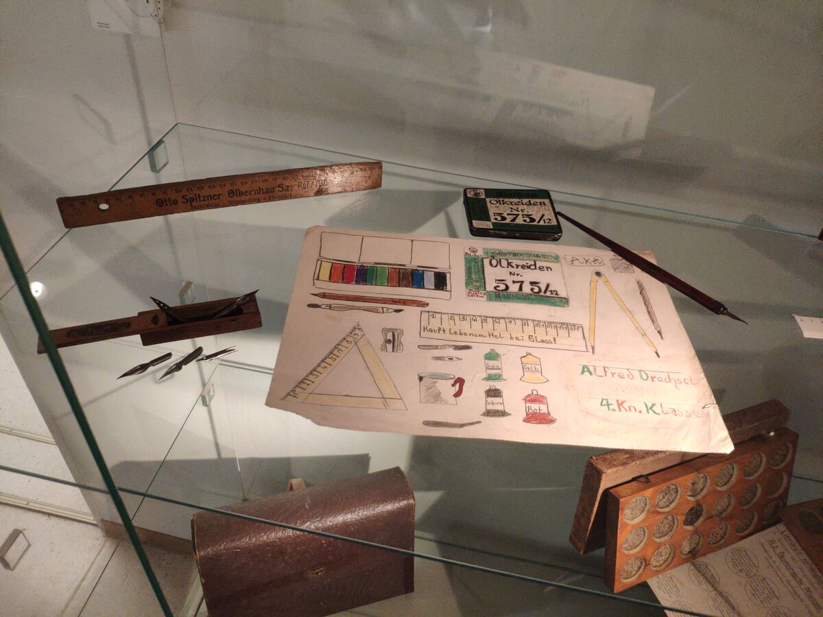 Es wird an die vergessene Lehrmittelherstellung der Stadt erinnert. Außerdem sind verschiedene Lehrbücher ausgestellt. Das älteste stammt von 1780. Auch die Schulgebäude der Stadt und ihre Bedeutung für die einzelnen Ortsteile sind Teil der Ausstellung und es gibt auch spezielle Mitmachangebote für Schulklassen. Sie können beispielsweise das Schreiben mit Feder und Tinte ausprobieren.
