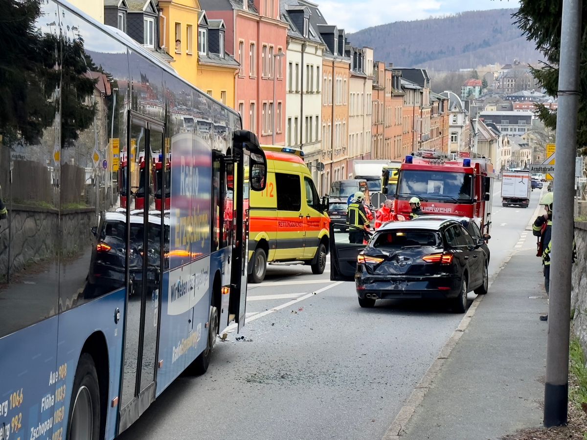 Am Montag hat es in Aue bei bei zwei Unfällen Verletzte gegeben. Gegen 13:45 krachte es zuerst auf der Schneeberger Straße in Höhe der Einmündung zur Arndstraße, so ein Reporter vor Ort. Am Unfall waren ein Bus und zwei PKW beteiligt. Verletzt wurden wohl der Busfahrer und ein Autofahrer. Zur Unfallursache ist bislang noch nichts bekannt. Etwa eine Stunde später waren zwei Fahrzeuge auf der Dr.-Otto-Nuschke-Straße in einen Unfall verwickelt. Auch hier wurden zwei Personen verletzt. Sie kamen in ein Krankenhaus.