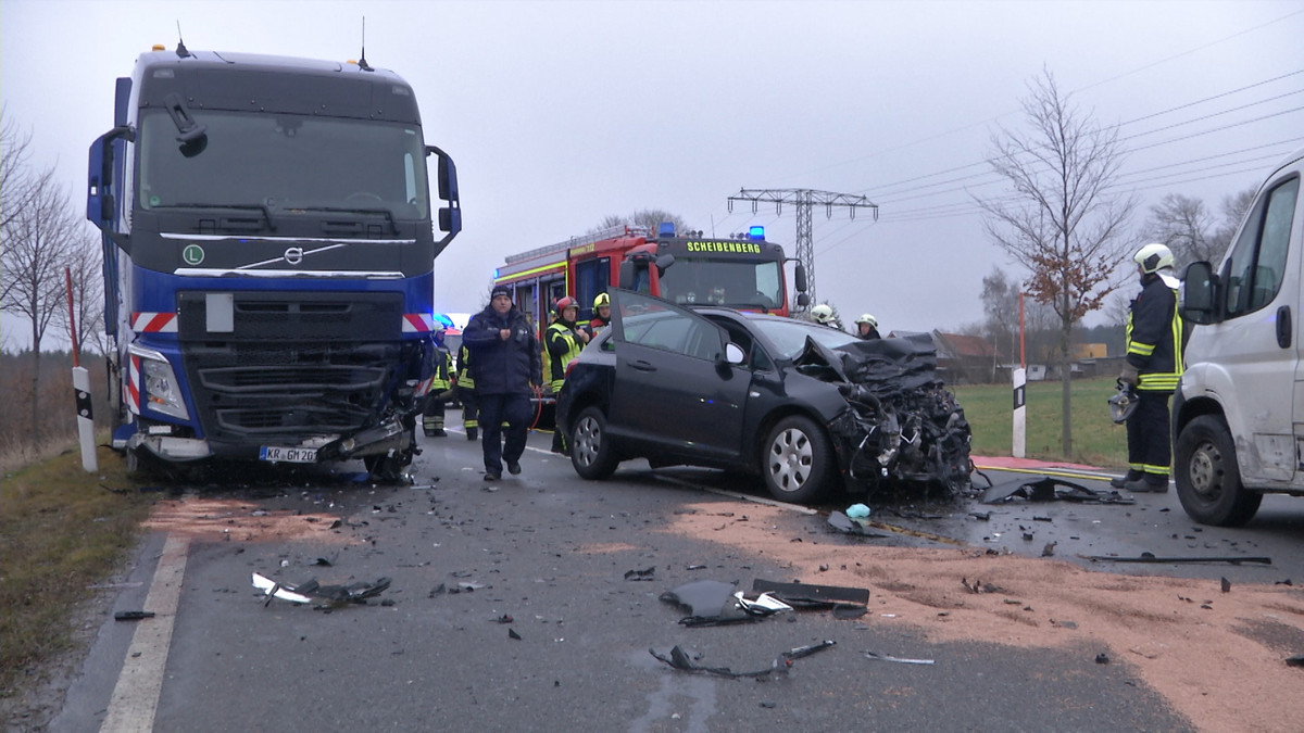 Bei einem Unfall auf dem Autobahnzubringer S258 zwischen Scheibenberg und Elterlein sind am Montag zwei Menschen verletzt worden - einer davon schwer. Ein Opel-Fahrer hatte in einer Kurve die Kontrolle über seinen Wagen verloren und krachte frontal mit einem LKW zusammen. Anschließend wurde das Auto noch gegen einen Kleintransporter geschleudert. Der Autofahrer eingeklemmt und musste von der Feuerwehr befreit werden. Er kam schwer verletzt ins Krankenhaus. Der LKW-Fahrer wurde ebenfalls verletzt. Der Autobahnzubringer war nach dem Unfall mehrere Stunden voll gesperrt.
